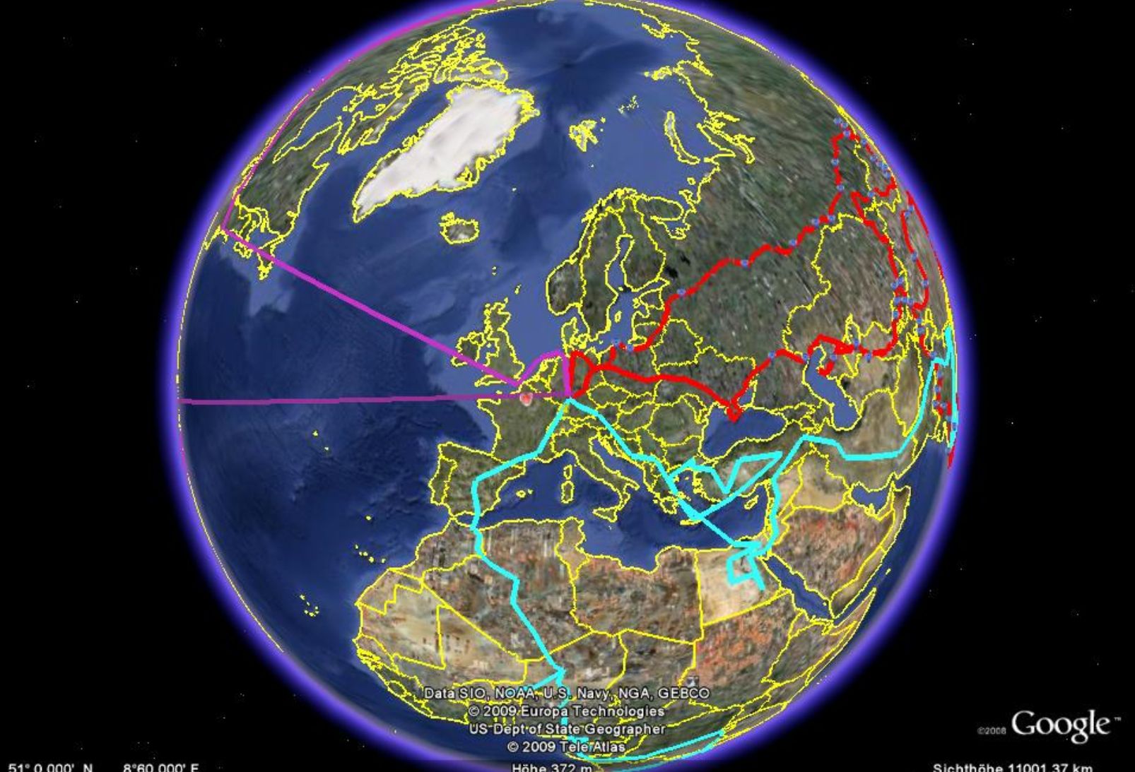 Deutschland-Polen-Litauen-Lettland-Russland-Mongolei-Russland-Kasachstan-Kirgistan-China-Pakistan-Indien-Malaysia-Thailand